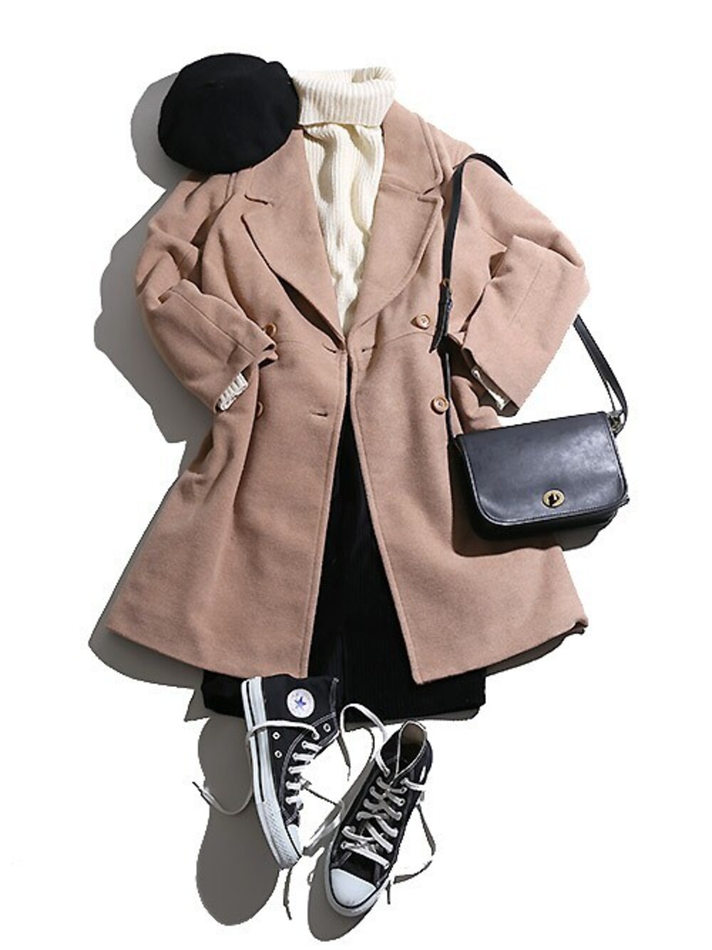 クリスマスにぴったり★昨日のメンズに引き続き、カップルコーデをご紹介! 人気のチェスターコートをメインにした、冬の大人カジュアルコーディネート♪ インナーや小物をモノトーンで統一し、アウターのキャメルカラーをより際立たせます◎ 定番の白タートルニットは大人っぽい着こなしだけでなく、デニムと合わせてカジュアルに、 スカートと合わせてガーリーにもOK!幅広い着こなしに対応します。 足元にはあえてスニーカーを合わせることでこなれ感を演出しましょう! 是非、この機会にチェックしてみて下さい!