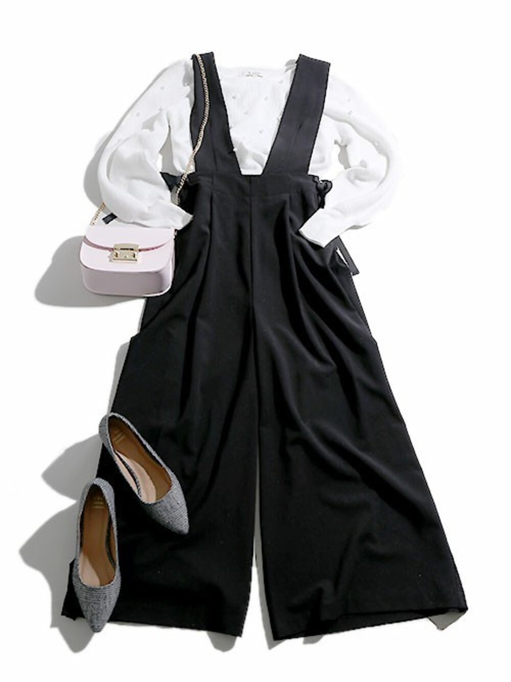 本日は【サイドリボンVネックサロペット】を使ったコーデをご紹介致します! サイドにあしらわれたリボンが手軽にコーデのアクセントに◎ 今季らしいワイドパンツ仕様で、ストンとした落ち感がラインを綺麗に見せてくれ、スタイルUP効果も期待♪ 合わせた白のニットでモノトーンに統一し、バランスよく★ 挿したピンクのバッグが女性らしいフェミニンな印象をプラス! ぜひ、チェックしてみてください!