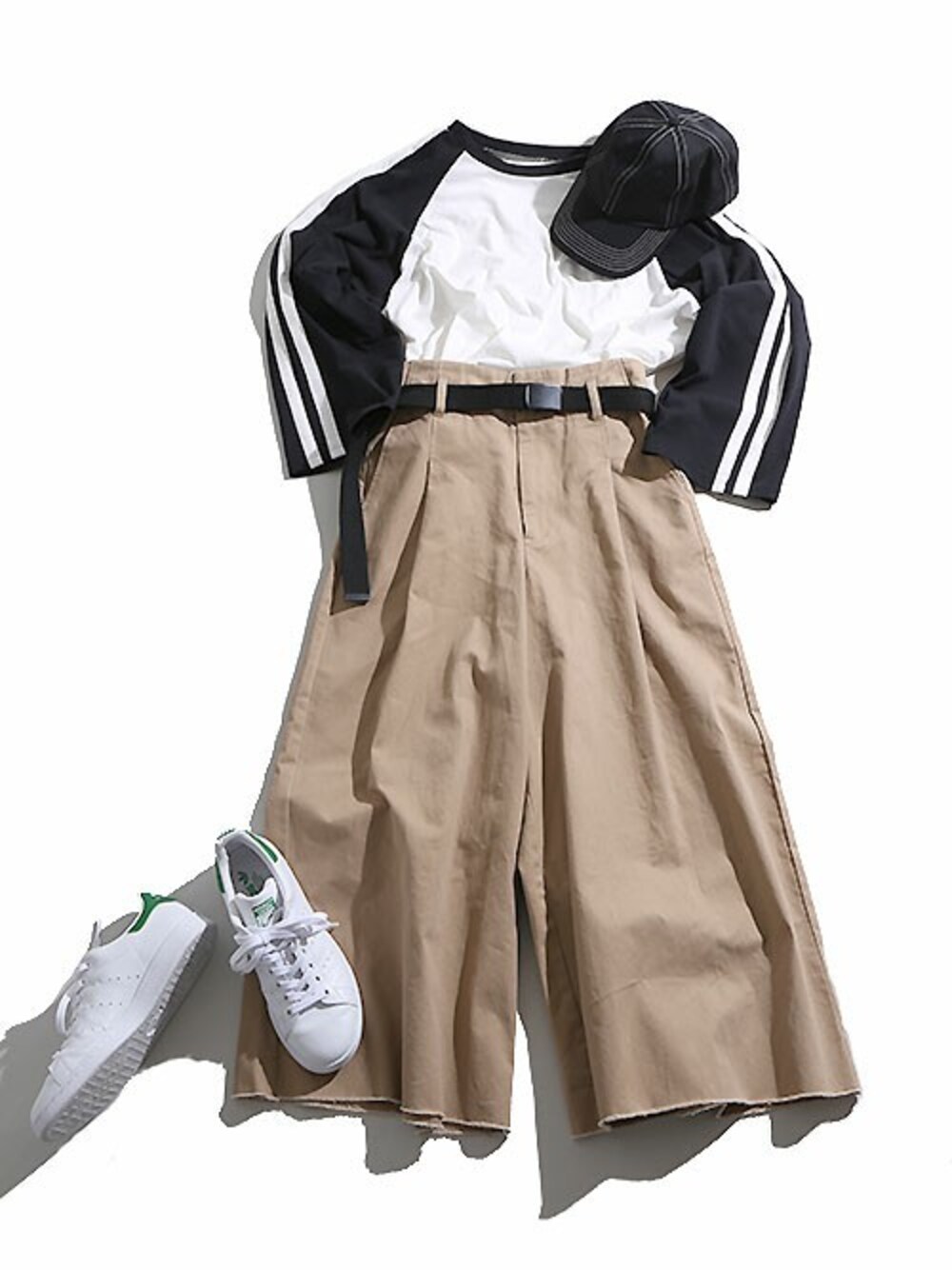 本日は、【ベルト付きチノワイドパンツ】を使ったコーデをご紹介します! チノ素材のワイドパンツはこれからの春シーズン活躍が期待できるアイテム!付属のウエストベルトが着こなしのアクセントになるのも嬉しいポイント♪ 今回は、ラグランTを合わせスポーツスタイルに仕上げました!袖のラインデザインがシンプルながら遊び心を演出してくれます◎ トップスは1枚でゆったり合わせられるのと、タックインスタイルなど様々な着こなしを楽しめます! ぜひ、この機会にチェックしてみて下さい!