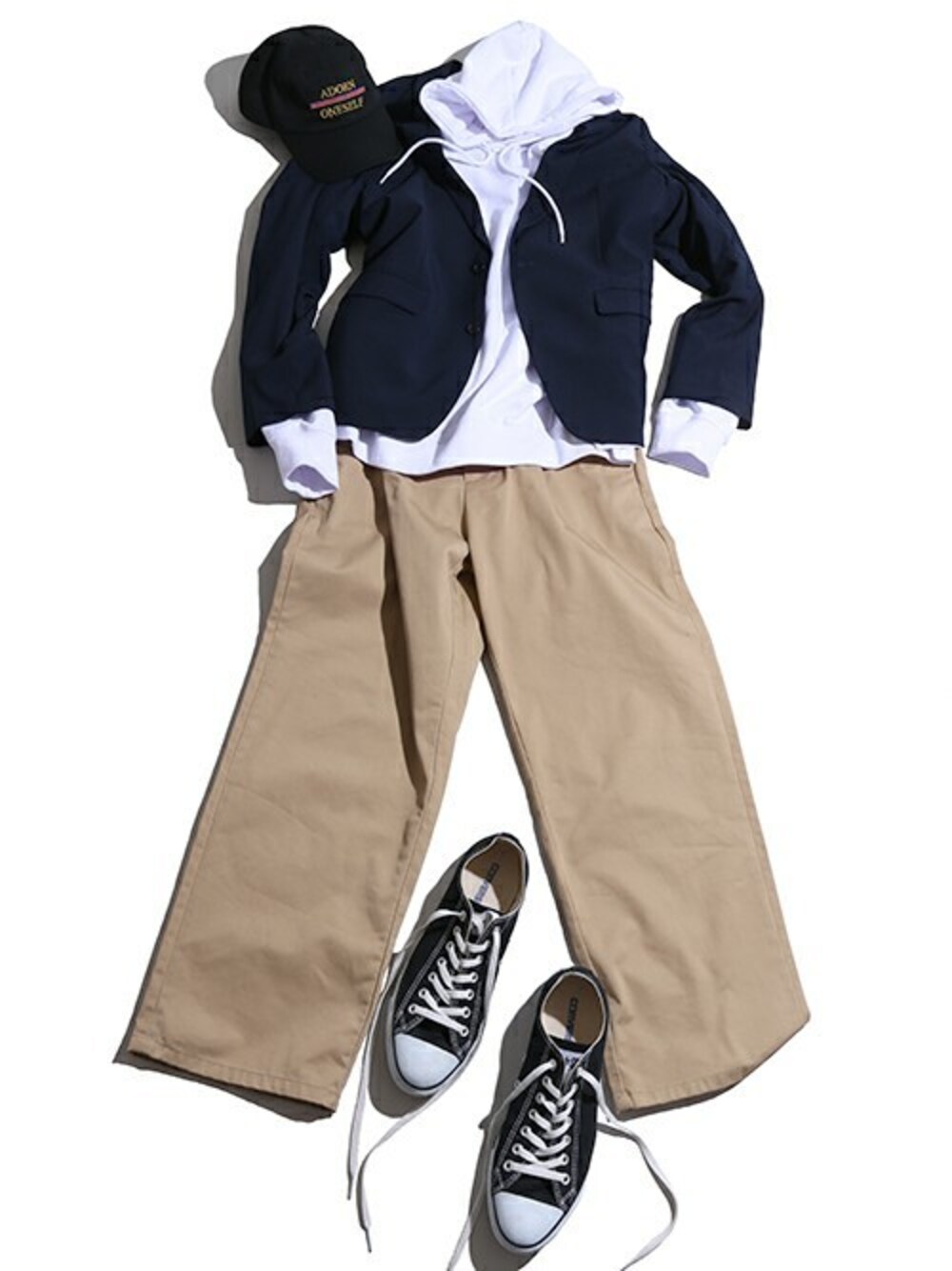 本日は綺麗目な印象のあるテーラードジャケットを使ったカジュアルコーデのご紹介。フレッピースタイル風に仕上げました! ジャケットの下にはパーカー、刺繍キャップゆっとりとしたシルエットのパンツで合わせることによってカジュアルダウンさせました。 皆さんもこの機会にぜひチェックされてみてください◎