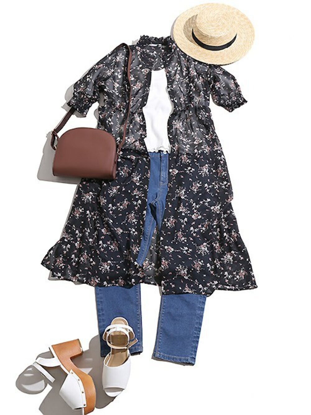 本日は【フラワーガウンワンピース】を使ったコーデをご紹介します! 定番の花柄アイテムは大活躍間違いなし◎ 一枚でガウンでの着こなしやワンピースとしても着回しができるオススメアイテム☆ 今回はガウンとして大人コーデに仕上げました! さりげない透け感と小物で季節感を演出◎ 普段のスタイリングに羽織るだけでオシャレ度UP☆ ぜひ、この機会にチェックしてみて下さい!