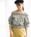 WEGO(WEGO STAFF)のシャツ/ブラウス「WEGO/シアサッカーフリルオフショルブラウス」を使ったコーディネート