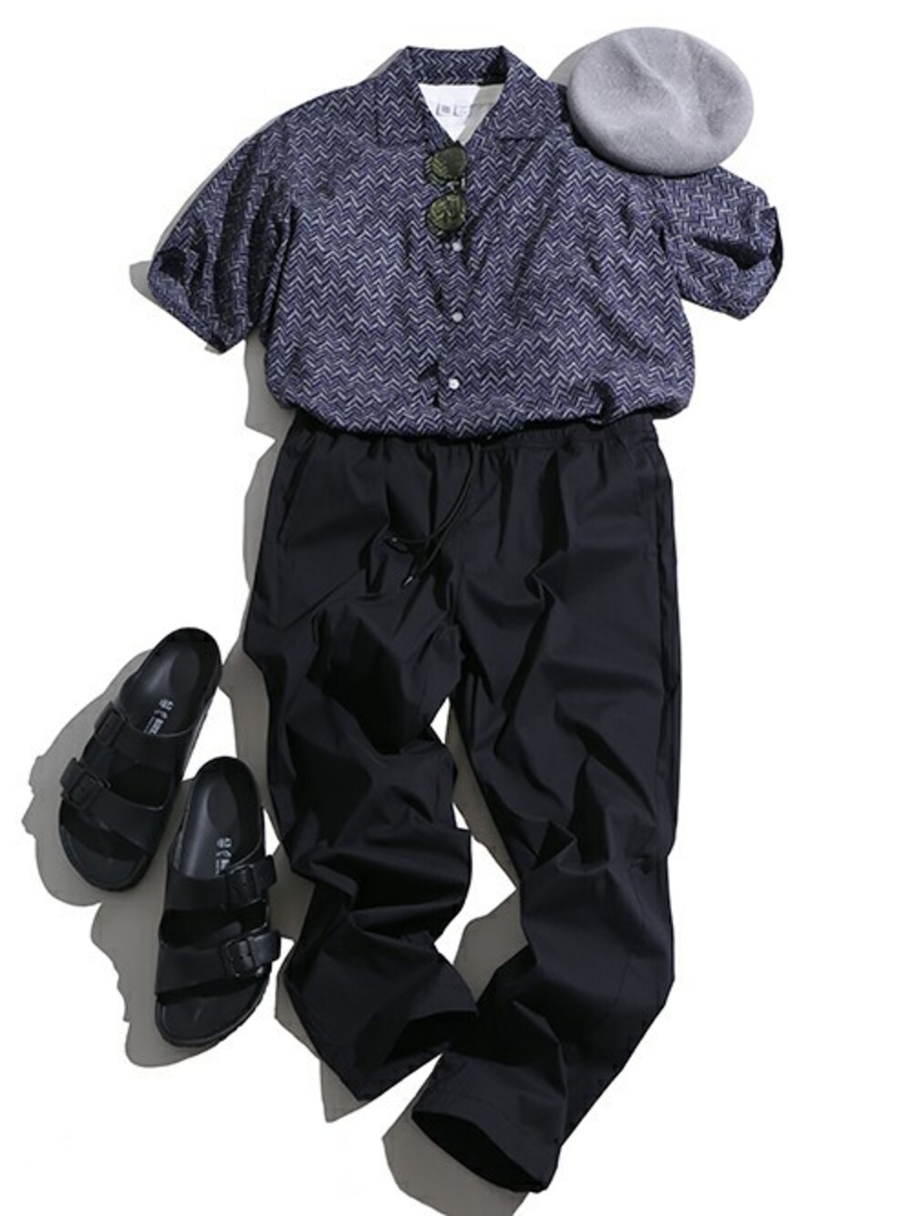 今季のトレンドアイテムであるオープンカラーシャツを主役にした大人カジュアルコーディネート。 シャツはあえてシックな総柄デザインの物をチョイス。タックインする事でより大人らしい印象に。 オープンカラーシャツは今季のマストアイテムなので、まだお持ちでない方は是非GETしてみて下さい◎