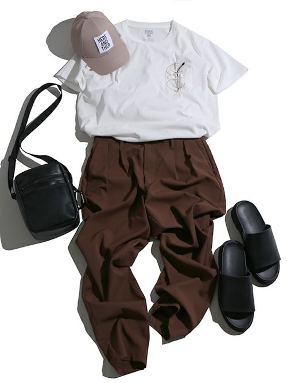 肌触りが良く丈夫なUSAコットンTシャツを主役にした、カジュアルコーディネート。 ボトムスにはブラウンのスラックスを合わせました。 シンプルな無地Tシャツはタックインする事で、トレンド感溢れるスタイリングに仕上がります! シンプルなアイテムはタックインや小物使いでガラリと雰囲気が変わります。 普段とは違ったお洒落を楽しみたい方に、是非オススメのコーディネートですよ◎
