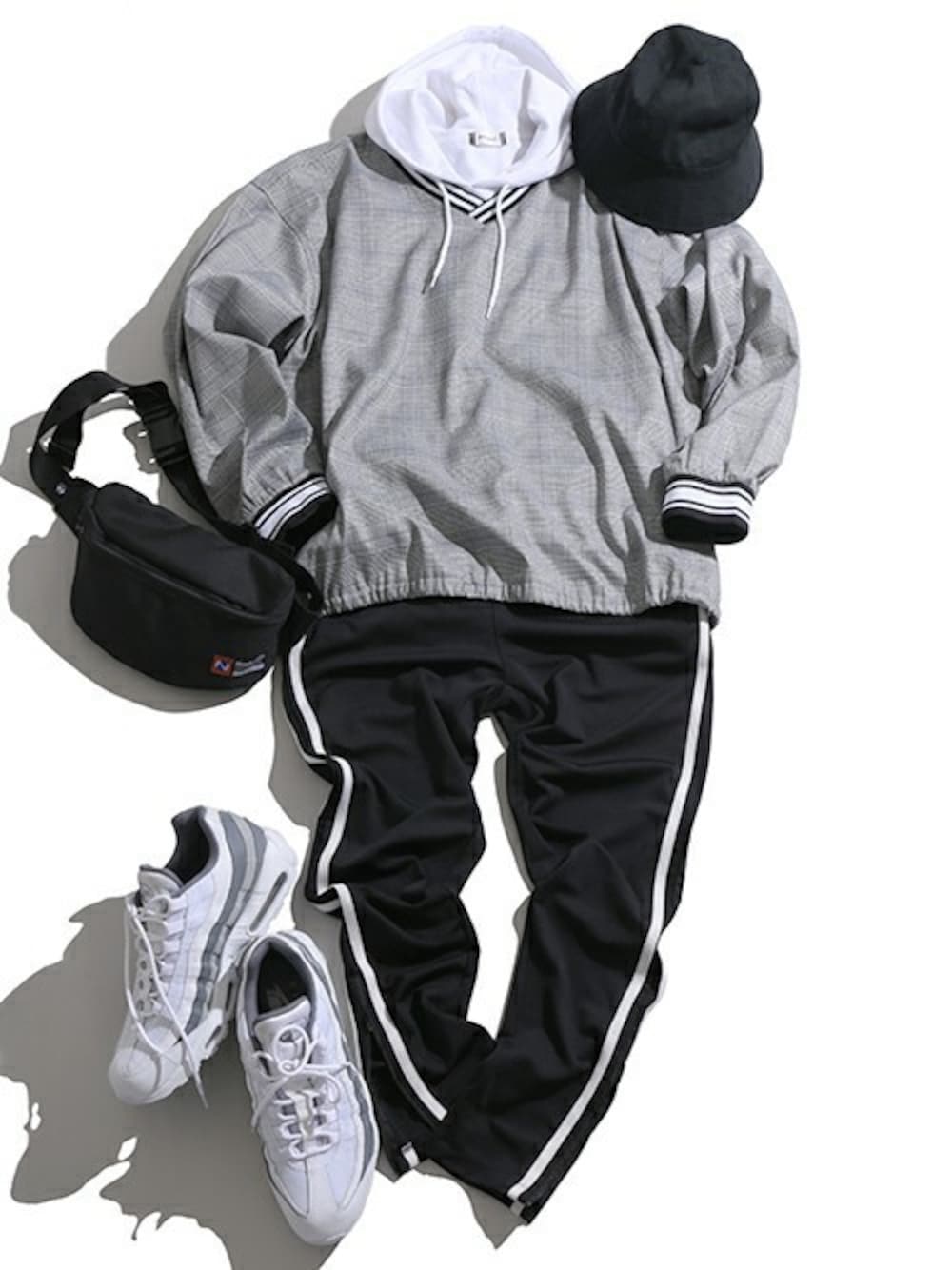 今期トレンドであるレトロスポーツな雰囲気を醸し出す、ホッケーシャツを主役にしたカジュアルコーディネート。 ボトムスにはラインジャージーパンツを合わせる事で、よりスポーツ感を高めているのもポイントです! 一見難しそうに見えるホッケーシャツも、パーカーやカットソーの上に重ねれば簡単に着こなせるので是非オススメですよ◎