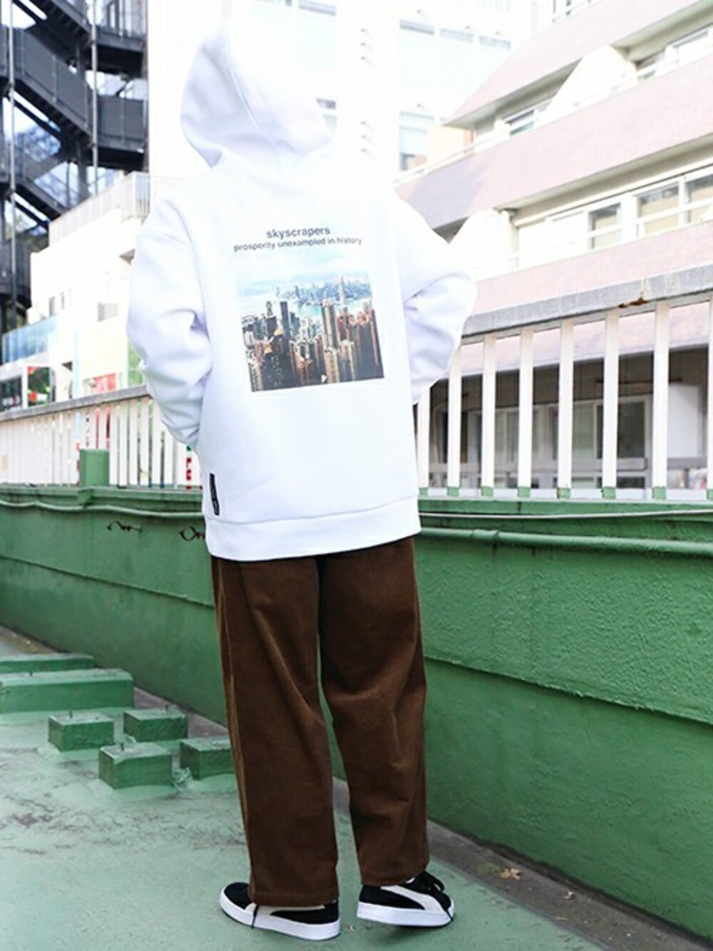 今回は転写プリント、刺繍、発泡プリントなどの様々な技法を取り入れた「転写フォトシートプリントパーカー」をご紹介します! しっかりとした厚みのあるヘビーウェイトのパーカーには太畝のコーデュロイワイドパンツを合わせ、今らしいスケーターライクなコーディネートに仕上げました◎ プリントパーカーは今季らしさを簡単に演出できるアイテムなので、まだお持ちでない方は是非GETしてみて下さい(^_^)