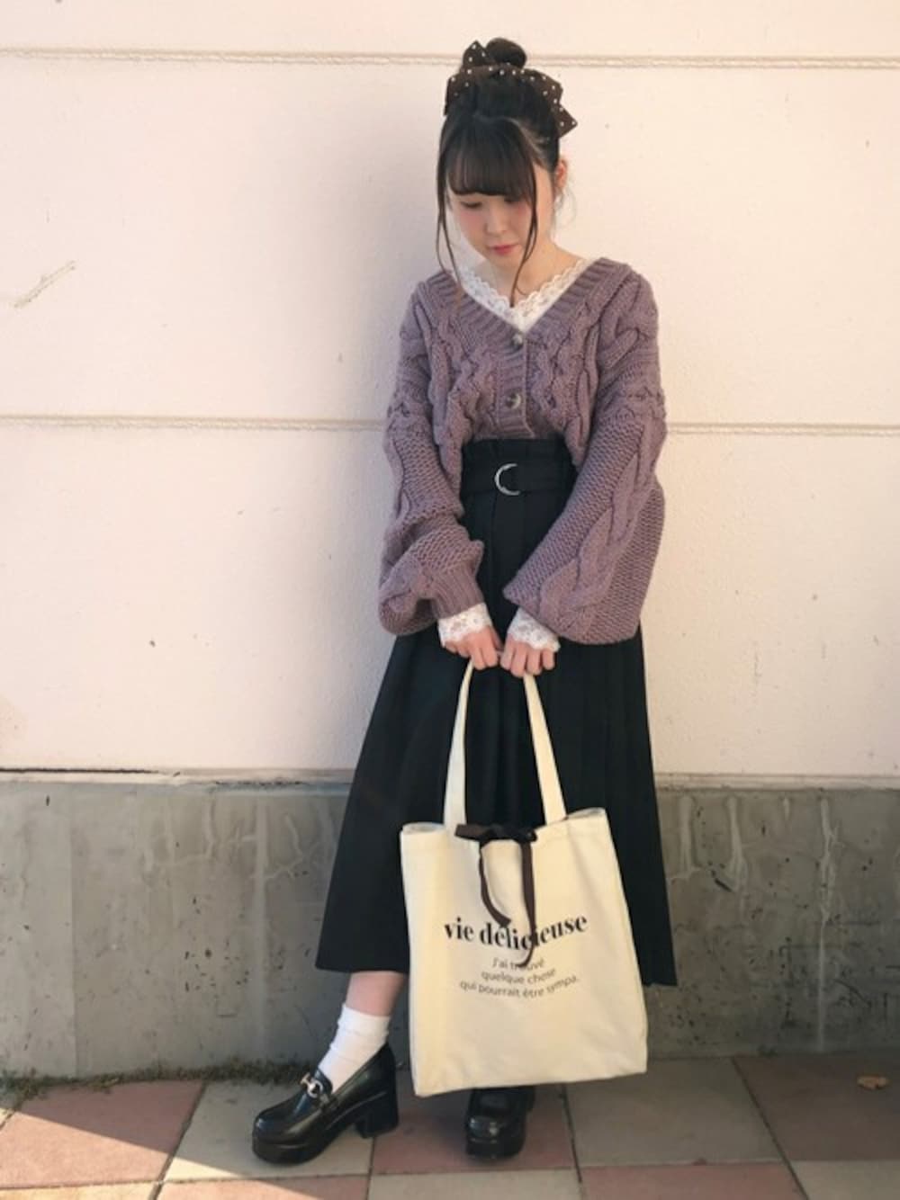 WEGO(WEGO STAFF)のカーディガン/ボレロ「WEGO/ロービングケーブルカーディガン」を使ったコーディネート