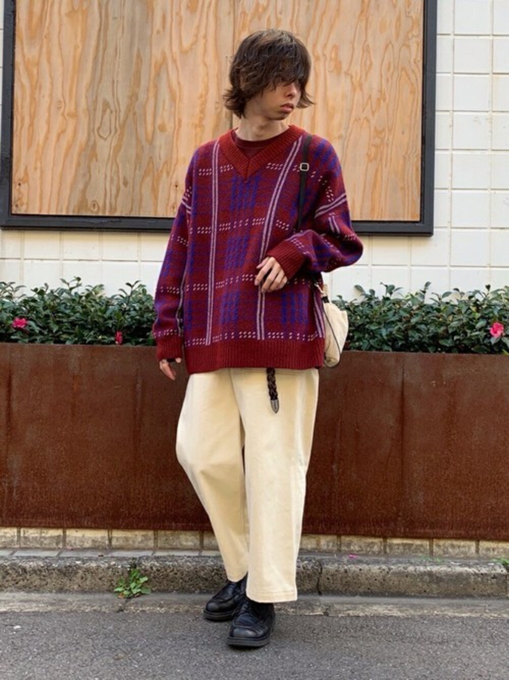 WEGO(WEGO STAFF)のニット/セーター「WEGO/クラシックチェックVネックセーター」を使ったコーディネート