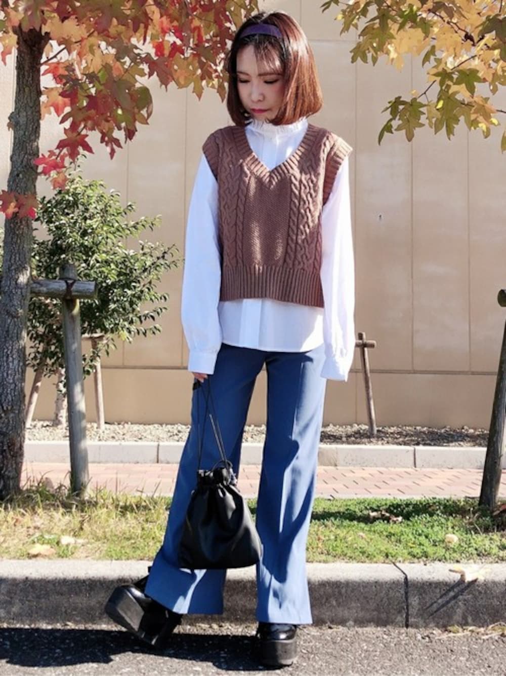WEGO(WEGO STAFF)のベスト「WEGO/カラーケーブルニットベスト」を使ったコーディネート
