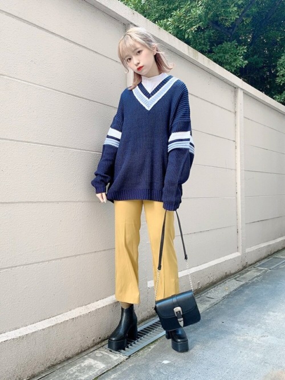 WEGO(WEGO STAFF)のニット/セーター「WEGO/畦編みラインチルデンセーター」を使ったコーディネート