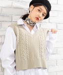 WEGO(WEGO STAFF)のベスト「WEGO/カラーケーブルニットベスト」を使ったコーディネート