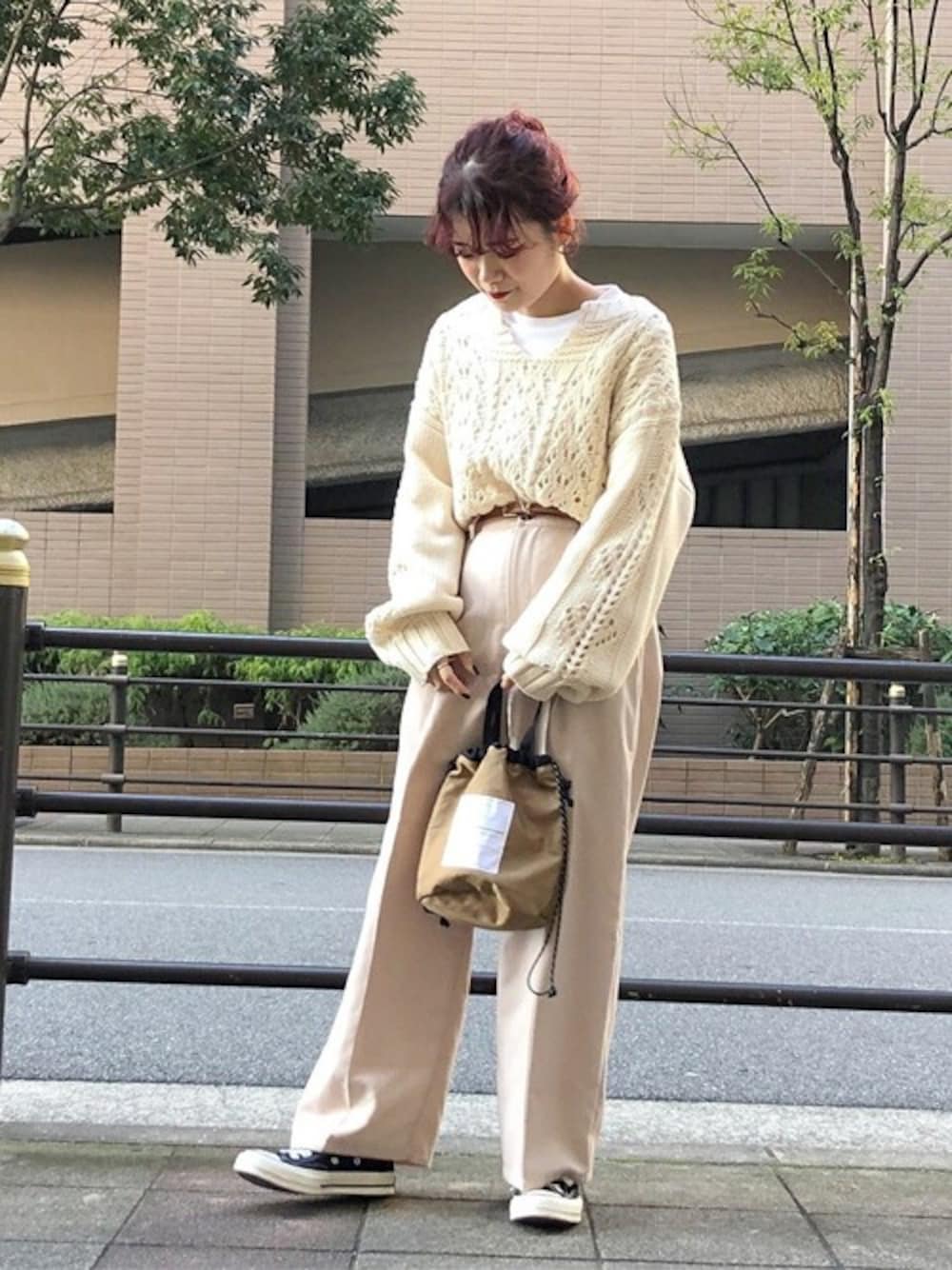 WEGO(WEGO STAFF)のニット/セーター「WEGO/透かし編みキーネックニット」を使ったコーディネート