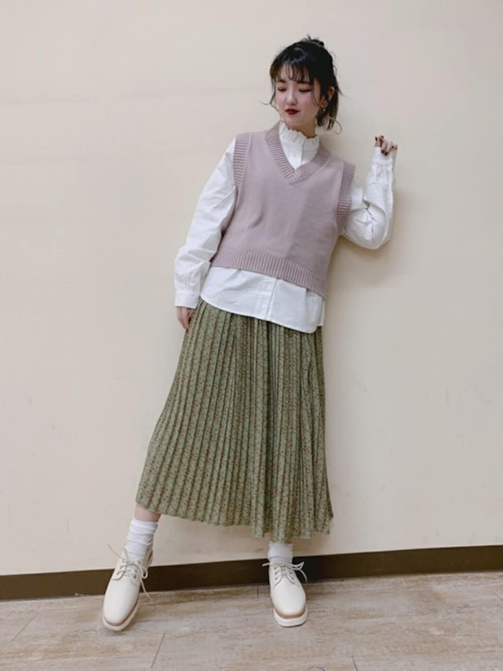 WEGO(WEGO STAFF)のベスト「WEGO/カラーニットベスト」を使ったコーディネート