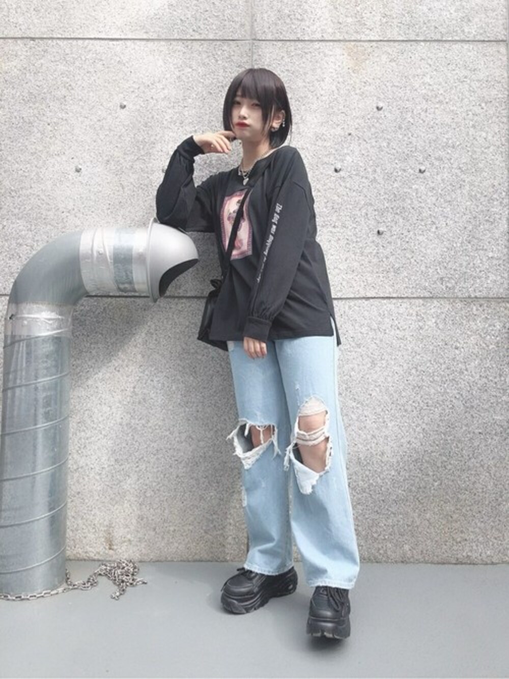 WEGO(WEGO STAFF)のTシャツ/カットソー「WEGO/和柄ロゴ刺繍ロンT」を使ったコーディネート