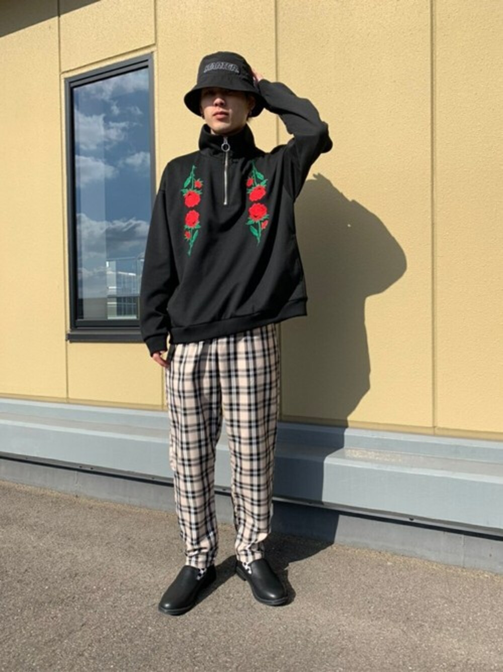 WEGO(WEGO STAFF)のスウェット「WEGO/ローズ刺繍ハーフジップビッグシルエットプルオーバー」を使ったコーディネート