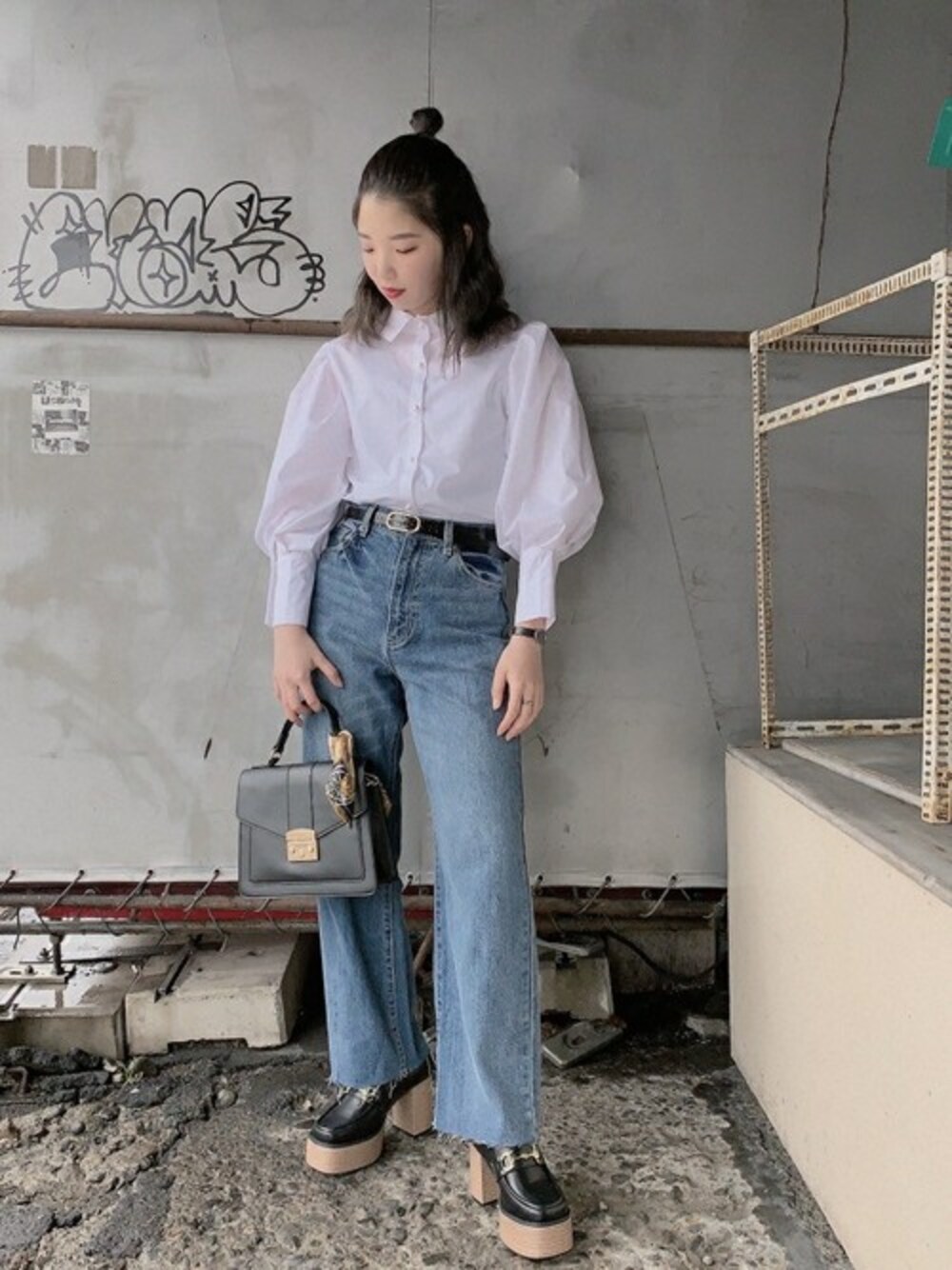WEGO(WEGO STAFF)のシャツ/ブラウス「WEGO/2wayパールボタンタックスリーブブラウス」を使ったコーディネート