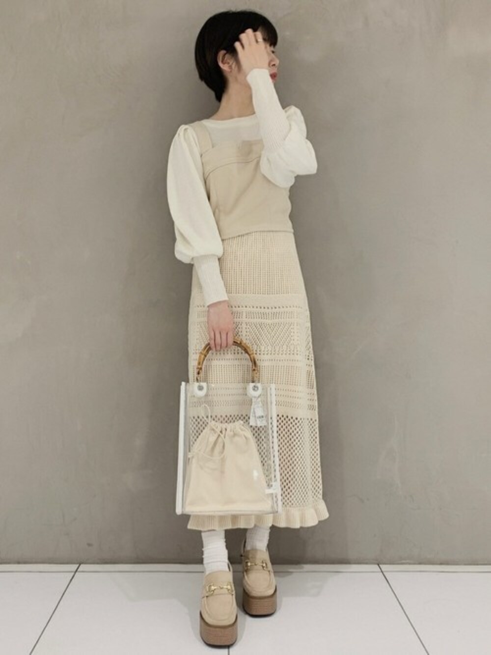WEGO(WEGO STAFF)のニット/セーター「WEGO/タックボリュームパフスリーブニット」を使ったコーディネート