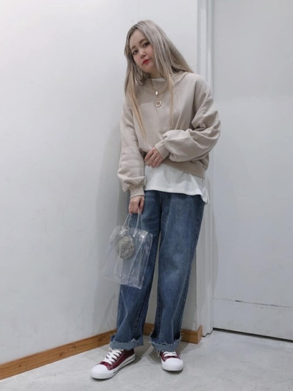 WEGO(WEGO STAFF)のスウェット「WEGO/カラーショートビッグシルエットボリューム袖スウェット」を使ったコーディネート