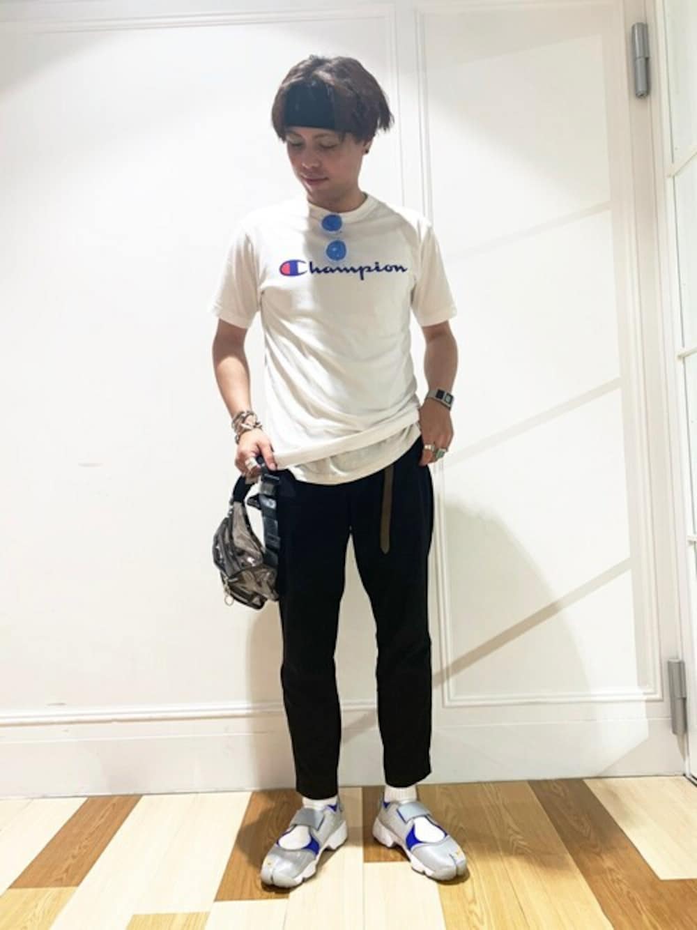 WEGO(WEGO STAFF)のTシャツ/カットソー「WEGO/【一部店舗限定】Champion チャンピオン ロゴ半袖Tシャツ」を使ったコーディネート