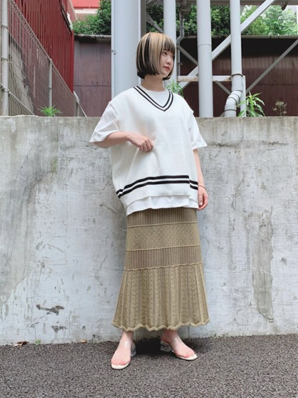 WEGO(WEGO STAFF)のベスト「WEGO/ミラノリブチルデンニットベスト」を使ったコーディネート