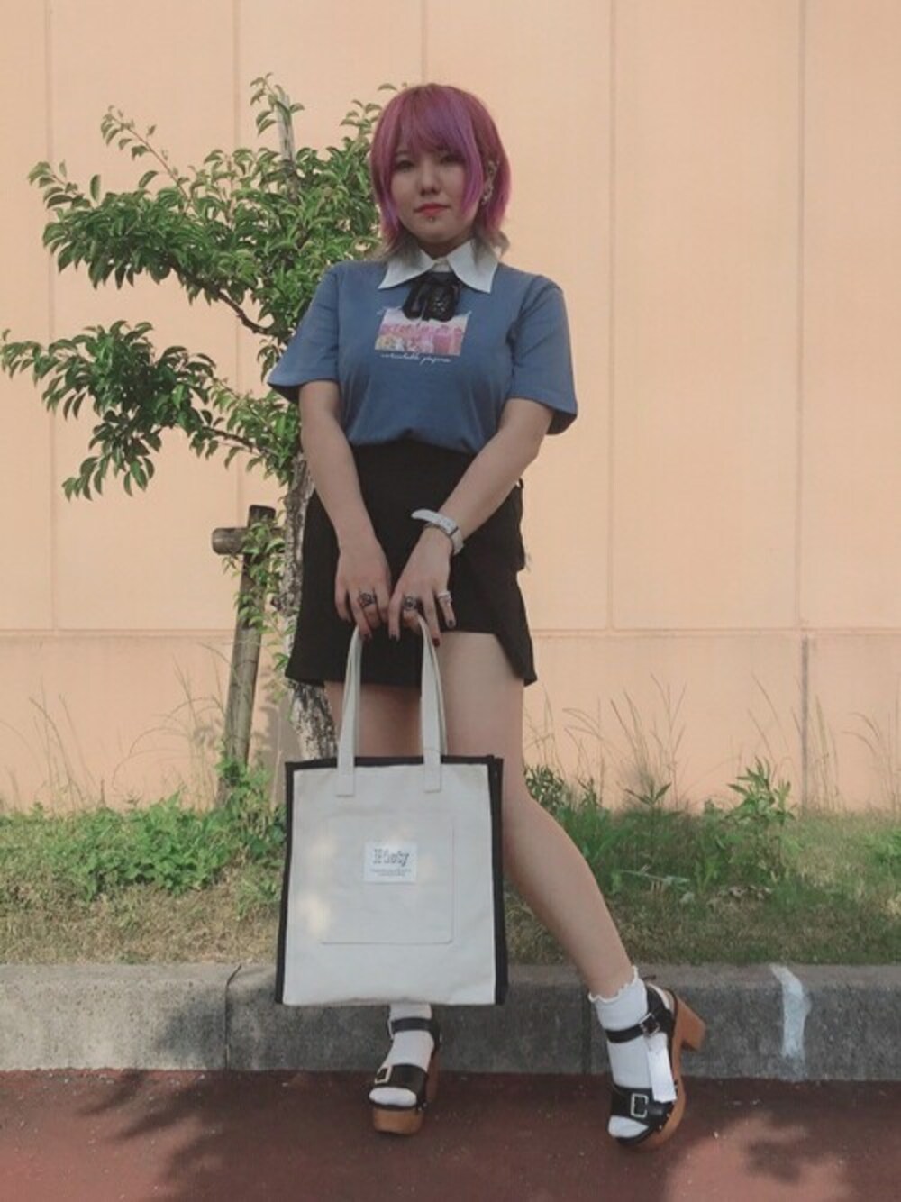WEGO(WEGO STAFF)のトートバッグ「WEGO/キャンバスパイピングトートバッグ」を使ったコーディネート