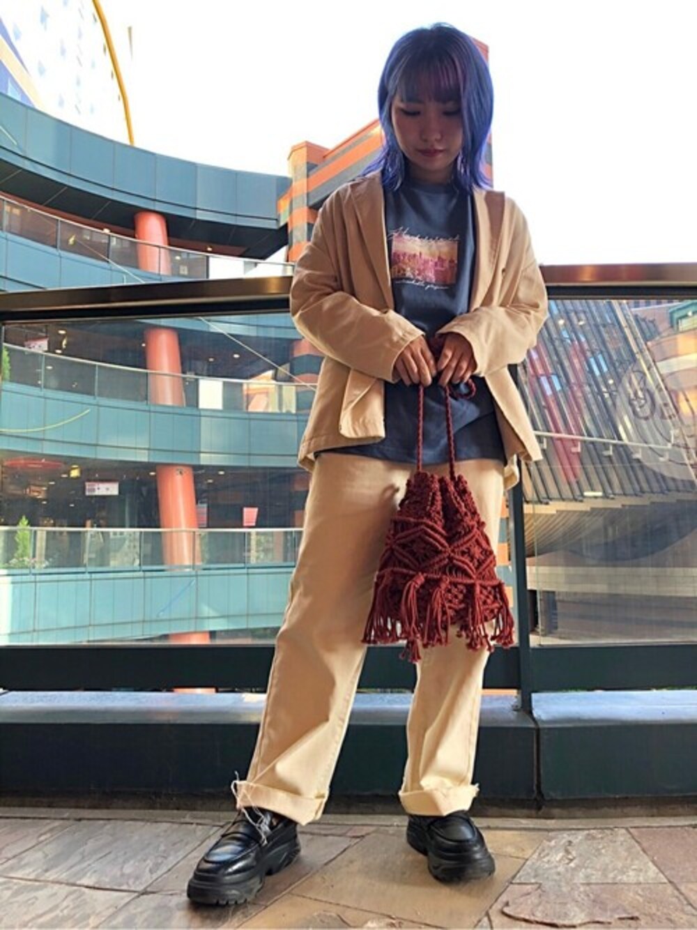WEGO(WEGO STAFF)のショルダーバッグ「WEGO/マクラメ巾着ショルダーバッグ」を使ったコーディネート