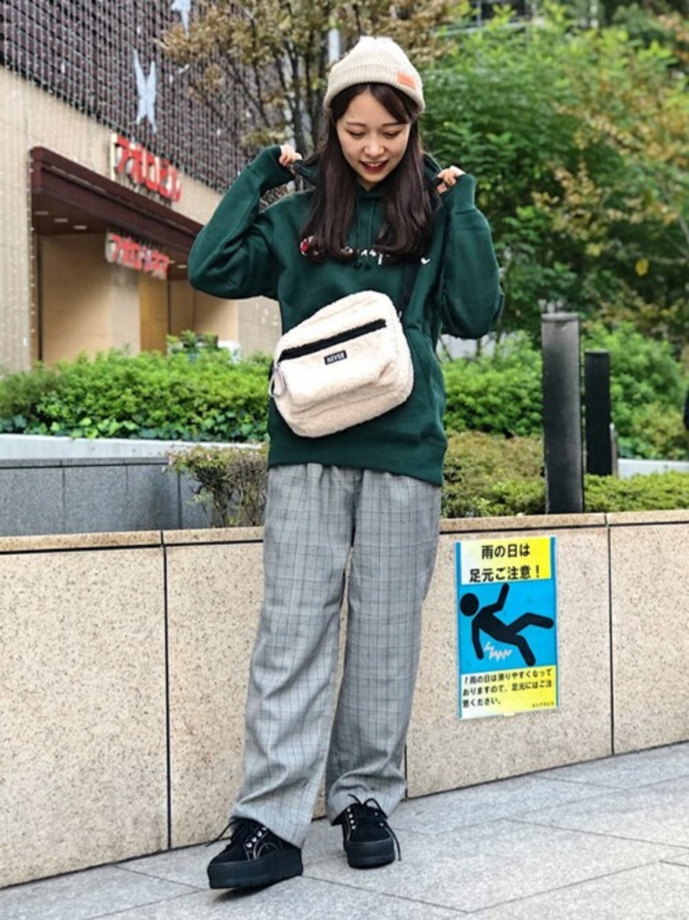 Instagram■@iam_yumekyapi 大人気!Championスウェット! デニム、スカートと幅広くあわせられます! 裏地は冬仕様の裏起毛ʕ·͡ˑ·ཻʔ あたたかいですよ(*ºчº*) チェックパンツは秋冬定番のオシャレアイテムです!コーデに1箇所取り入れてオシャレ感up! 靴も厚底になっていてスタイルが良く見えます! ボアのショルダーは存在感があって 冬の必須アイテムです( * ॑꒳ ॑*)⸝⋆。✧♡