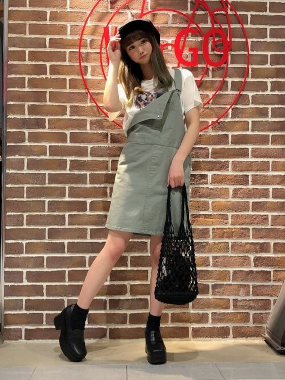 WEGO(WEGO STAFF)のジャンパースカート「WEGO/デイリーツイルミニジャンスカ」を使ったコーディネート