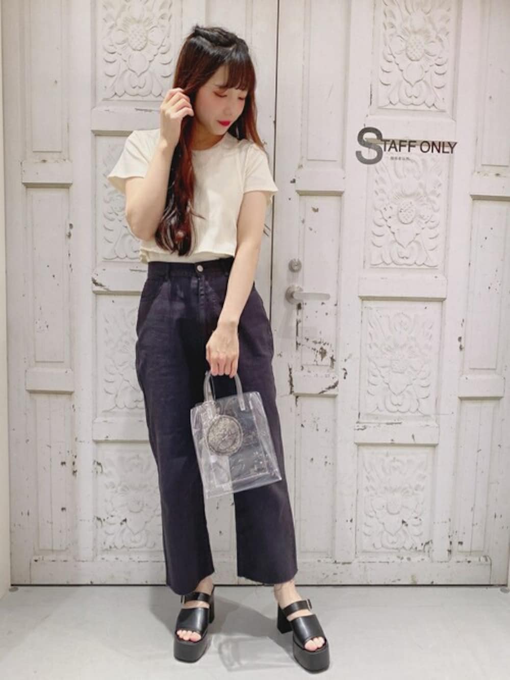 WEGO(WEGO STAFF)のショルダーバッグ「WEGO/クリアチューブ2wayショルダーバッグ」を使ったコーディネート