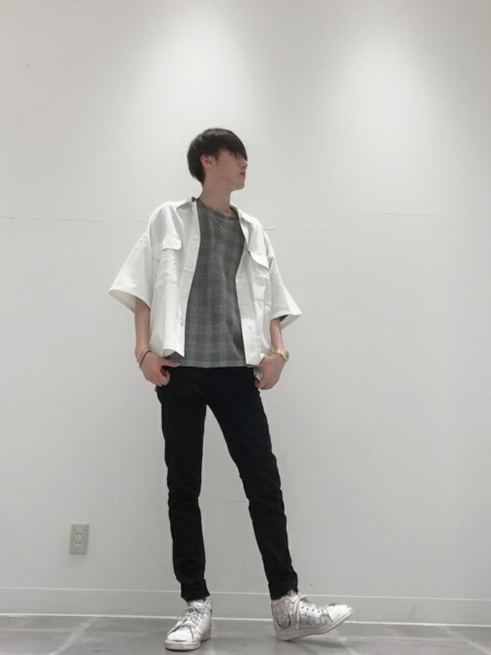 WEGO(WEGO STAFF)のTシャツ/カットソー「WEGO/チェック5分袖プルオーバー」を使ったコーディネート
