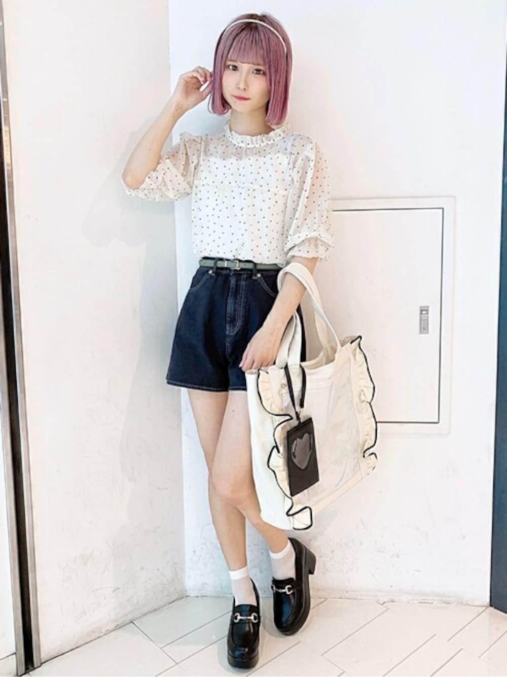 WEGO(WEGO STAFF)のシャツ/ブラウス「WEGO/フリルハイネック5分袖ブラウス」を使ったコーディネート