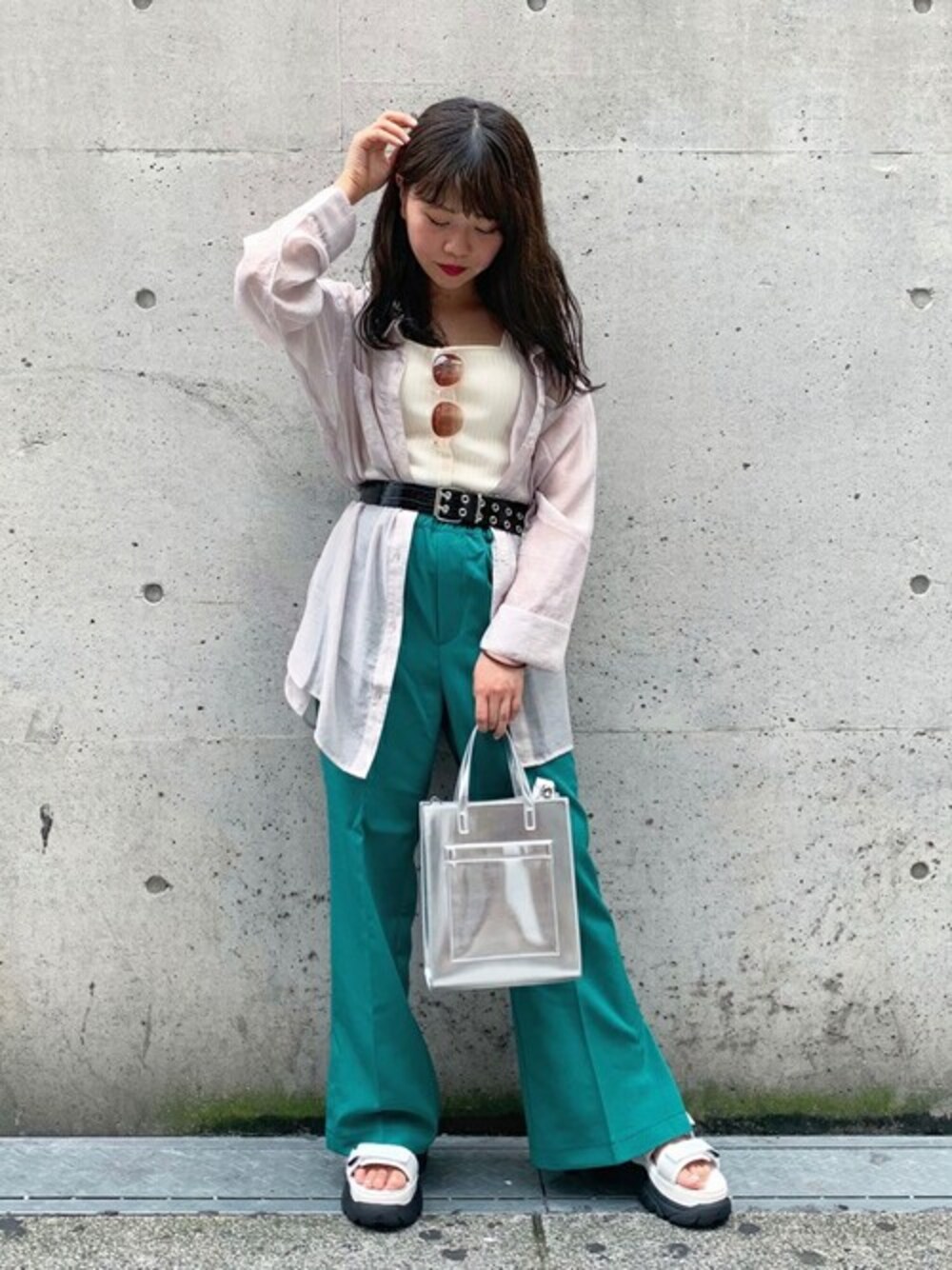 WEGO(WEGO STAFF)のトートバッグ「WEGO/2wayフェイクレザーポケットショルダー付きトートバッグ」を使ったコーディネート