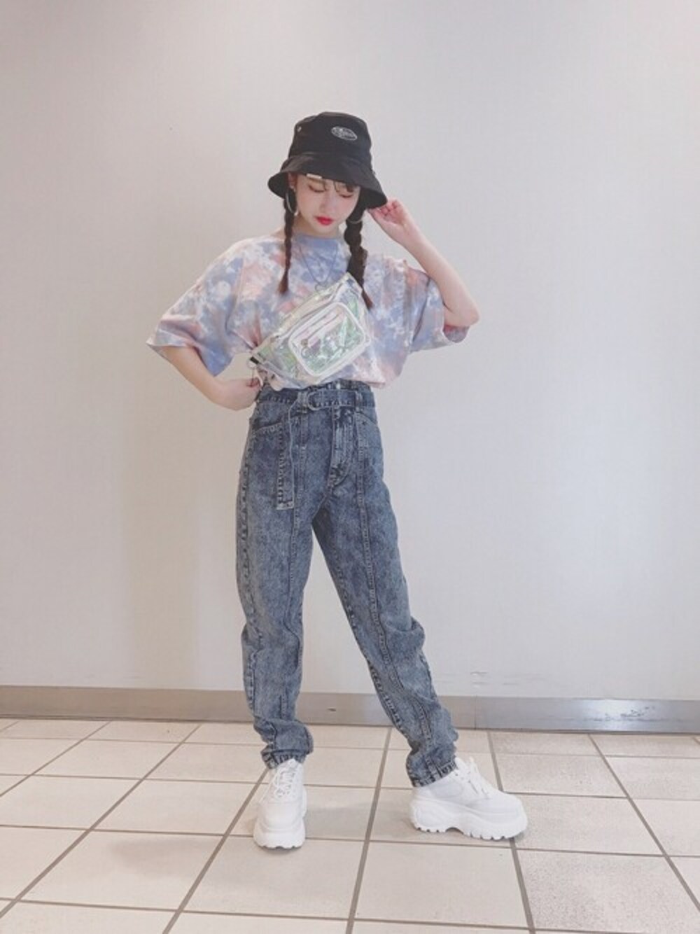 WEGO(WEGO STAFF)のデニムパンツ「WEGO/ケミカルハイウエストマムパンツ」を使ったコーディネート