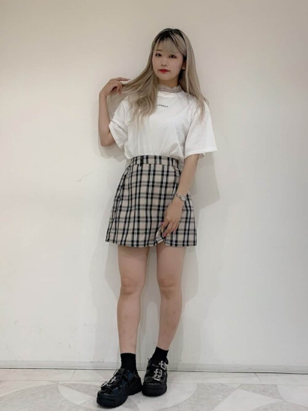 WEGO(WEGO STAFF)のスカート「WEGO/チェックラップミニスカート」を使ったコーディネート