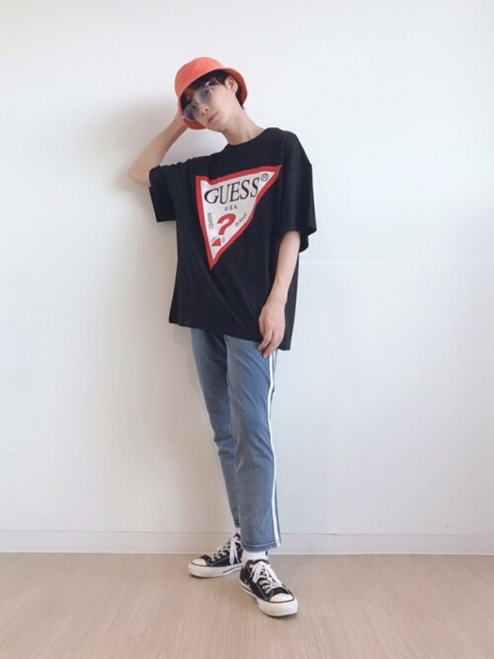 WEGO(WEGO STAFF)のデニムパンツ「WEGO/カットデニムラインパンツ」を使ったコーディネート