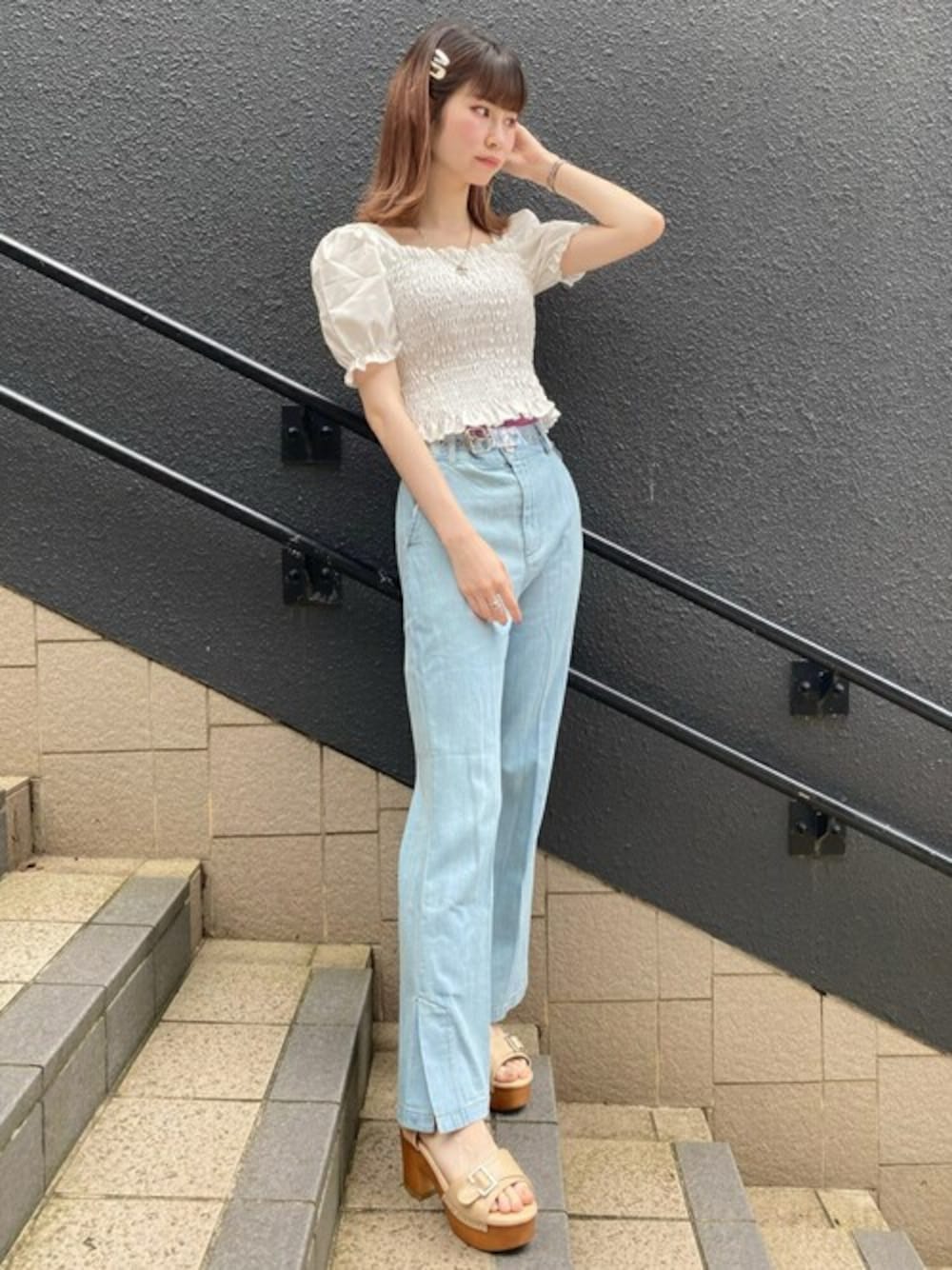 WEGO(WEGO STAFF)のデニムパンツ「WEGO/スリットセンタープレスパンツ」を使ったコーディネート