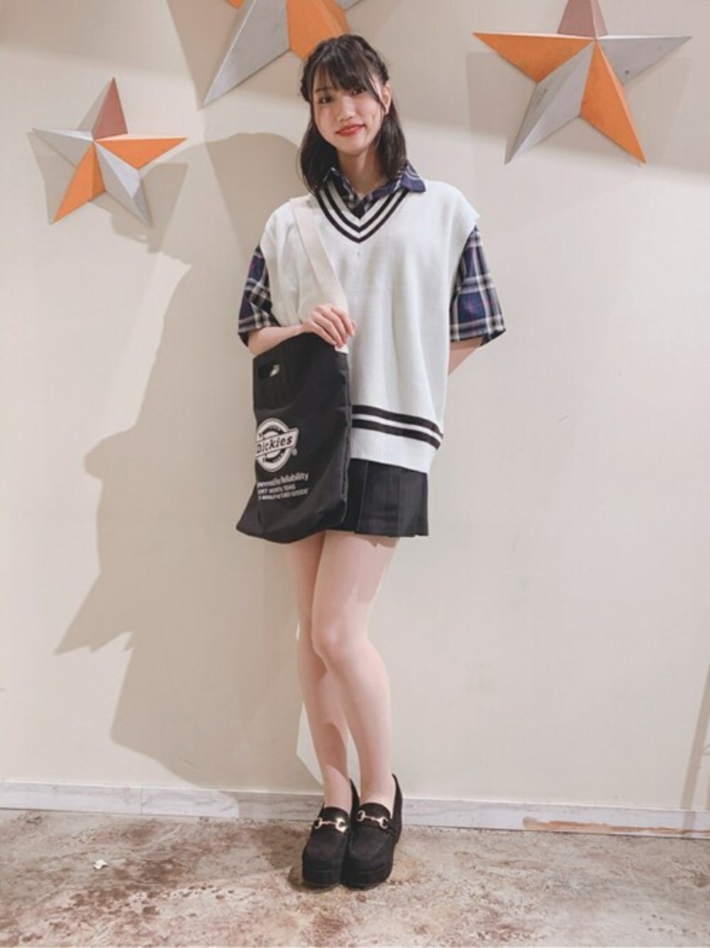 WEGO(WEGO STAFF)のベスト「WEGO/ミラノリブチルデンニットベスト」を使ったコーディネート