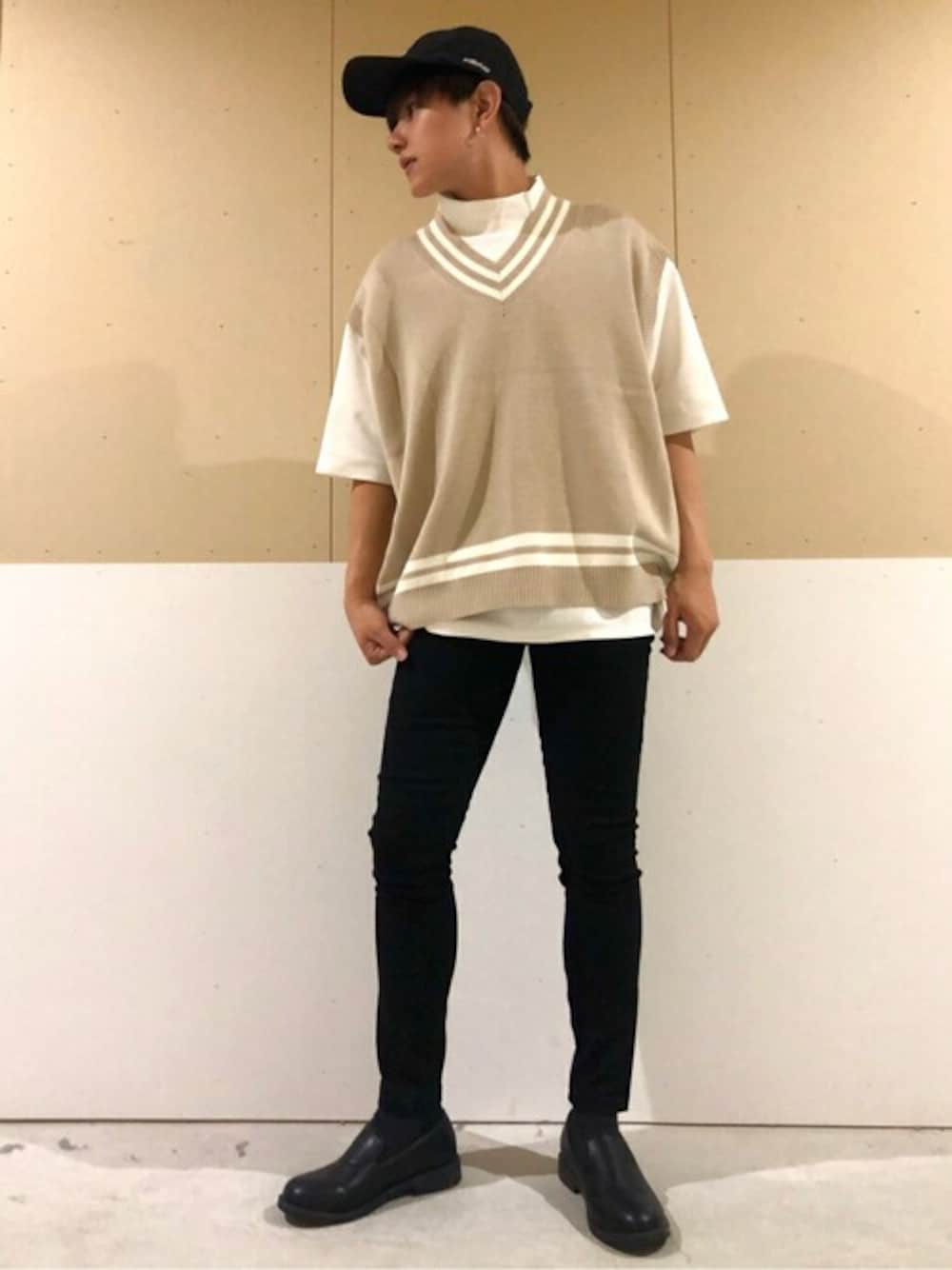■Instagram @kqzu_0402 ホワイトのモックネックTシャツとベージュのチルデンニットベストと黒スキニーで韓国風キレイめコーデをしてみました‼️ ボトムスと靴を黒にすることで足長効果をUPさせてくれます✌️