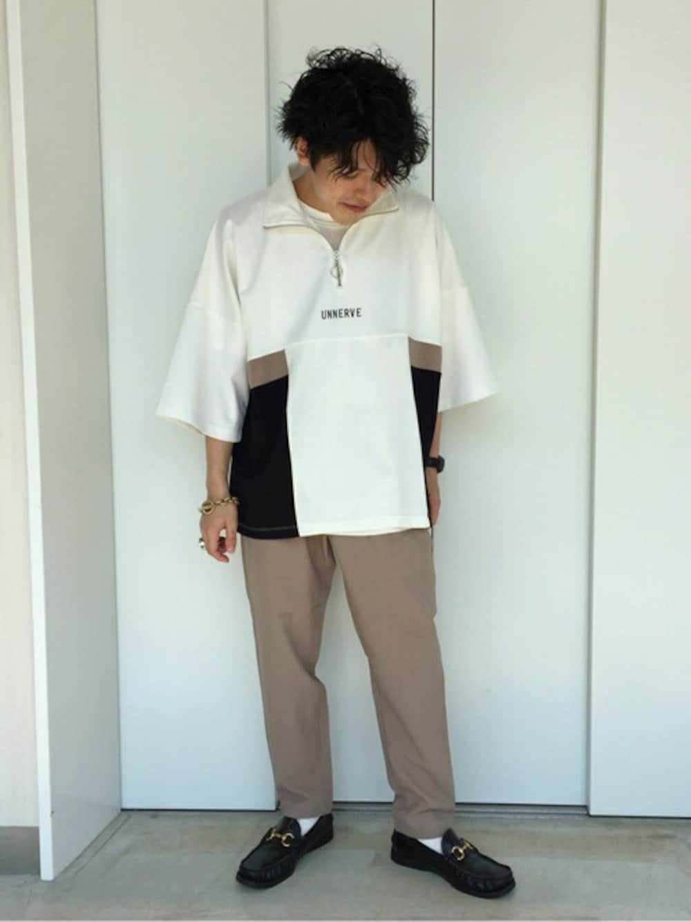 WEGO(WEGO STAFF)のTシャツ/カットソー「WEGO/ハーフジップカラーブロック5分袖ビッグシルエットプルオーバー」を使ったコーディネート