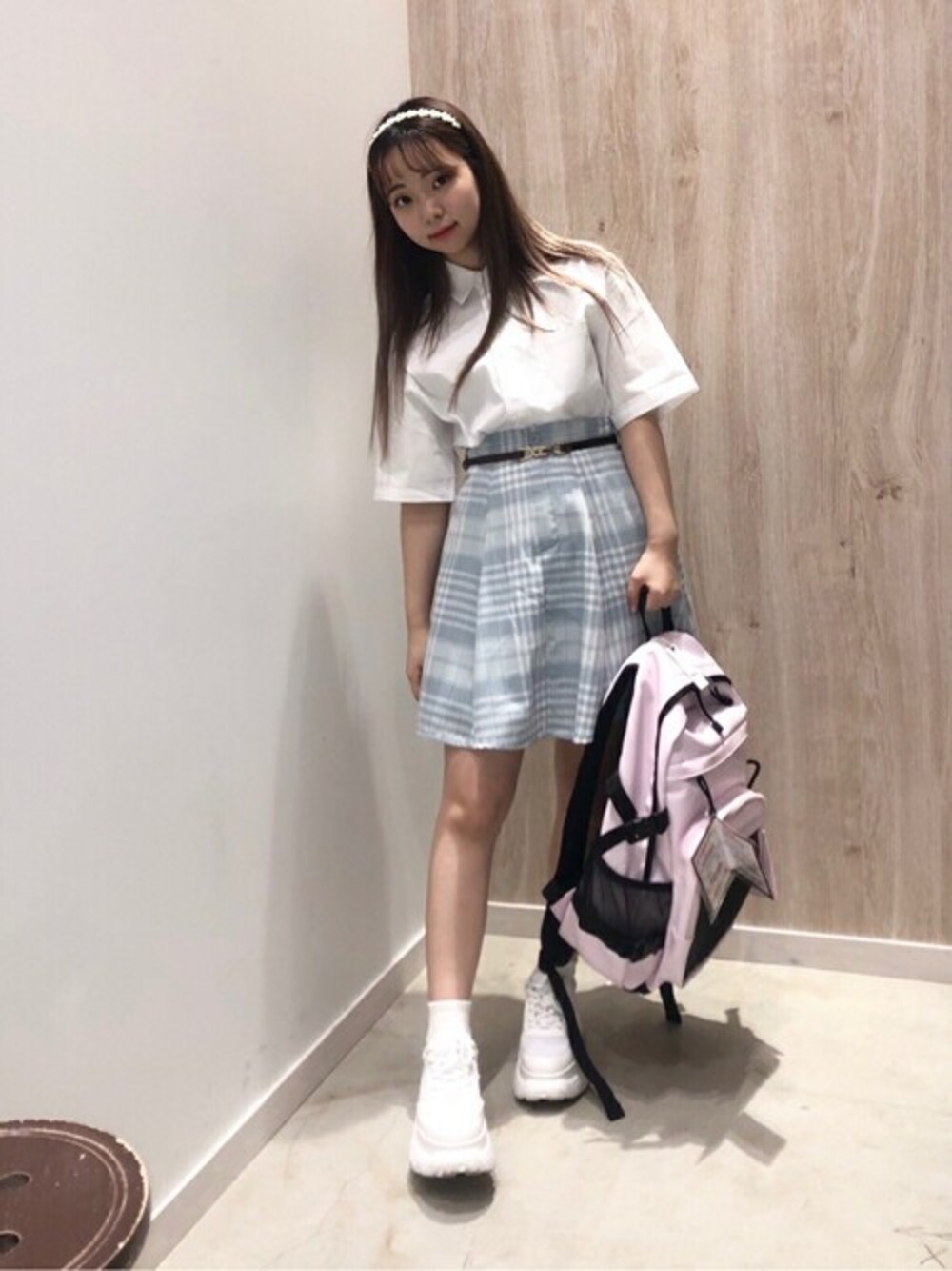 無地の白シャツと、チェック柄のスカートでスクールコーデの完成❣️ ★毎月5のつく日は「10%OFF」WEGO ZOZOTOWN限定★ 気になったアイテムはぜひお気に入り登録を♪