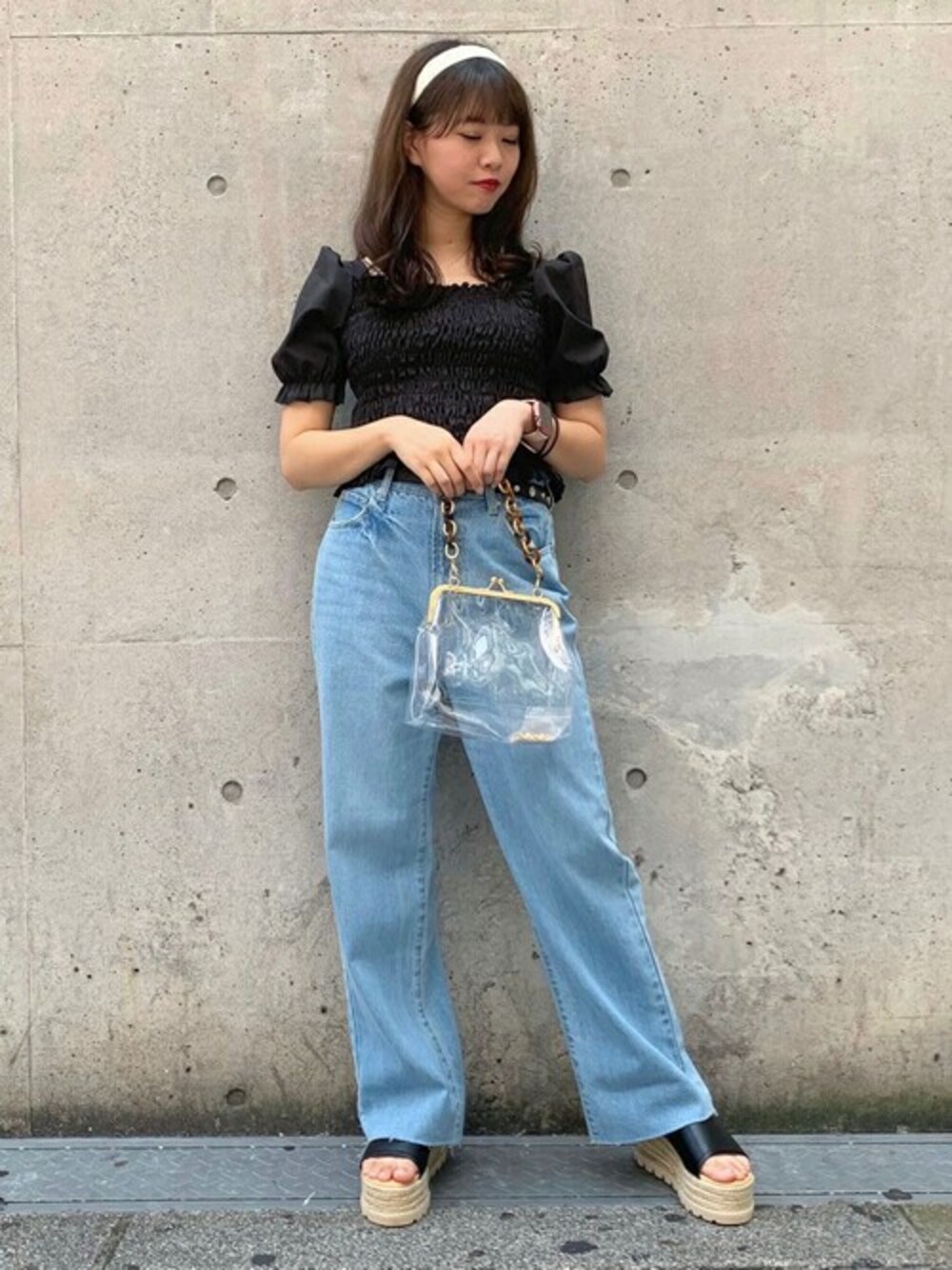 WEGO(WEGO STAFF)のショルダーバッグ「WEGO/がま口クリアショルダーバッグ」を使ったコーディネート