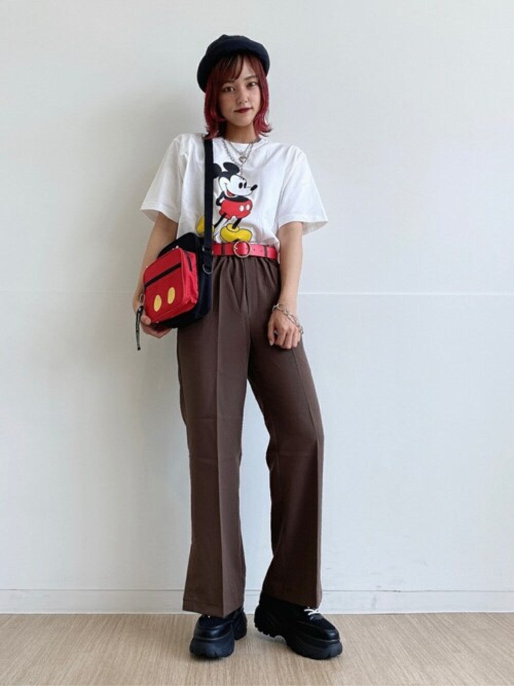 ■Instagram @simi_chin_ ミッキーコーデ☺︎ 黒、赤、イエローでミッキー風に☺︎ フレアパンツは秋のコーデにもぴったりです♡ ディズニーTシャツとてもプチプラなので要チェックです♡ ★毎月5のつく日は「10%OFF」WEGO ZOZOTOWN限定★ 気になったアイテムはぜひお気に入り登録を♪
