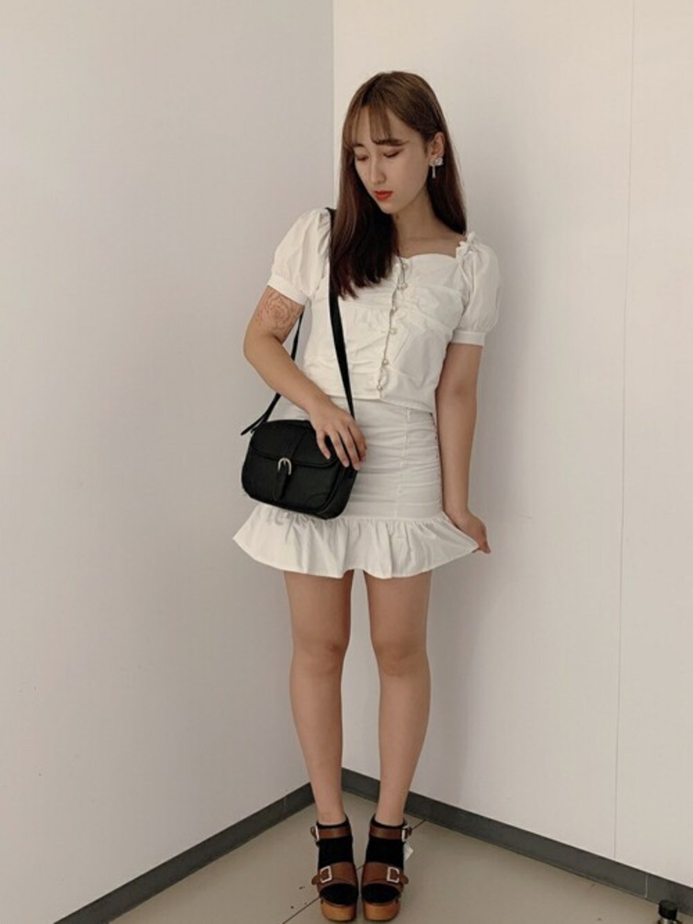 全身ホワイトコーデです❗韓国キレイめガーリースタイルです、スカートのドロストが可愛いです☺︎ ■Instagram @_shui_x.xl__ ★毎月5のつく日は「10%OFF」 WEGO ZOZOTOWN限定★ 気になったアイテムはぜひお気に入り登録を♪