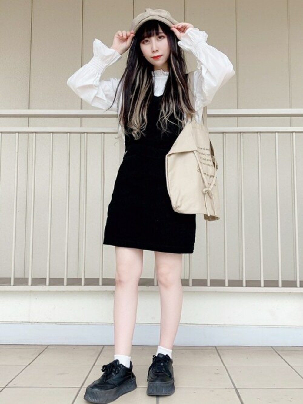 WEGO(WEGO STAFF)のジャンパースカート「WEGO/コーデュロイジャンパースカート」を使ったコーディネート