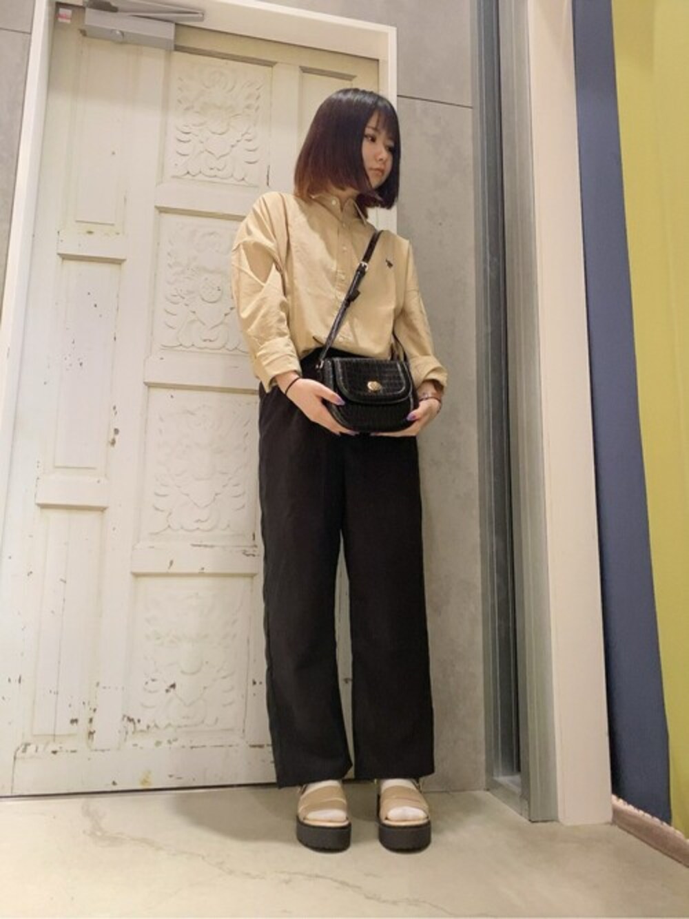 WEGO(WEGO STAFF)のショルダーバッグ「WEGO/クロコ型押しミニショルダーバッグ」を使ったコーディネート