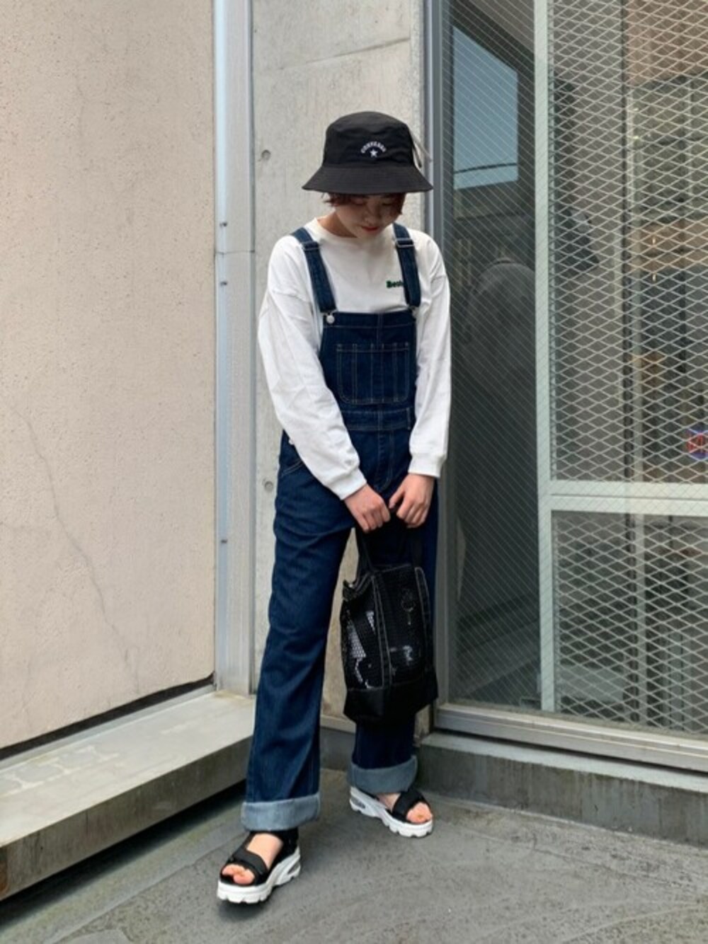 WEGO(WEGO STAFF)のトートバッグ「WEGO/CONVERSE MESH STAR PRINT 2WAY BAG/メッシュトート」を使ったコーディネート