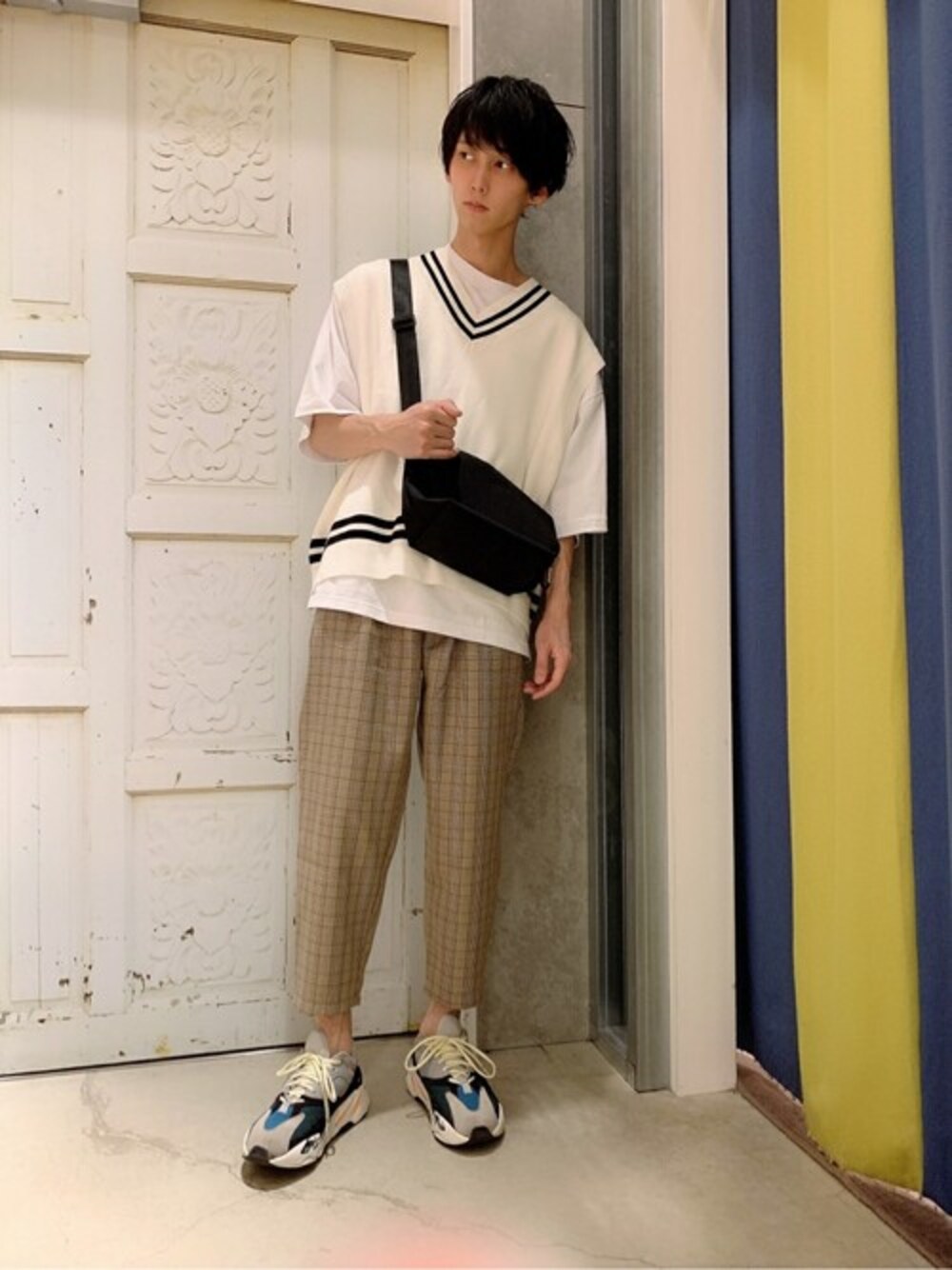 WEGO(WEGO STAFF)のベスト「WEGO/ミラノリブチルデンニットベスト」を使ったコーディネート