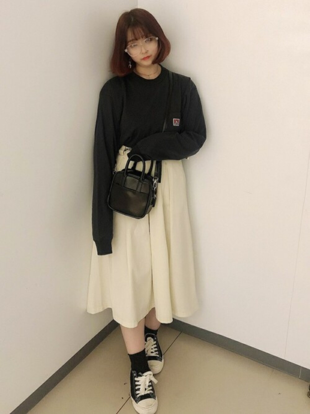 WEGO(WEGO STAFF)のスカート「WEGO/チノプリーツフレアロングスカート」を使ったコーディネート