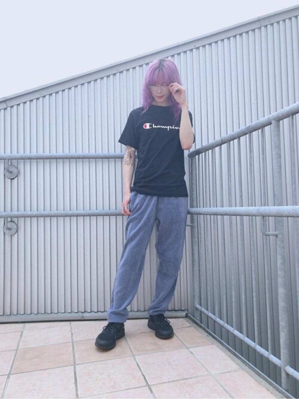 WEGO(WEGO STAFF)のTシャツ/カットソー「WEGO/【一部店舗限定】Champion チャンピオン ロゴ半袖Tシャツ」を使ったコーディネート