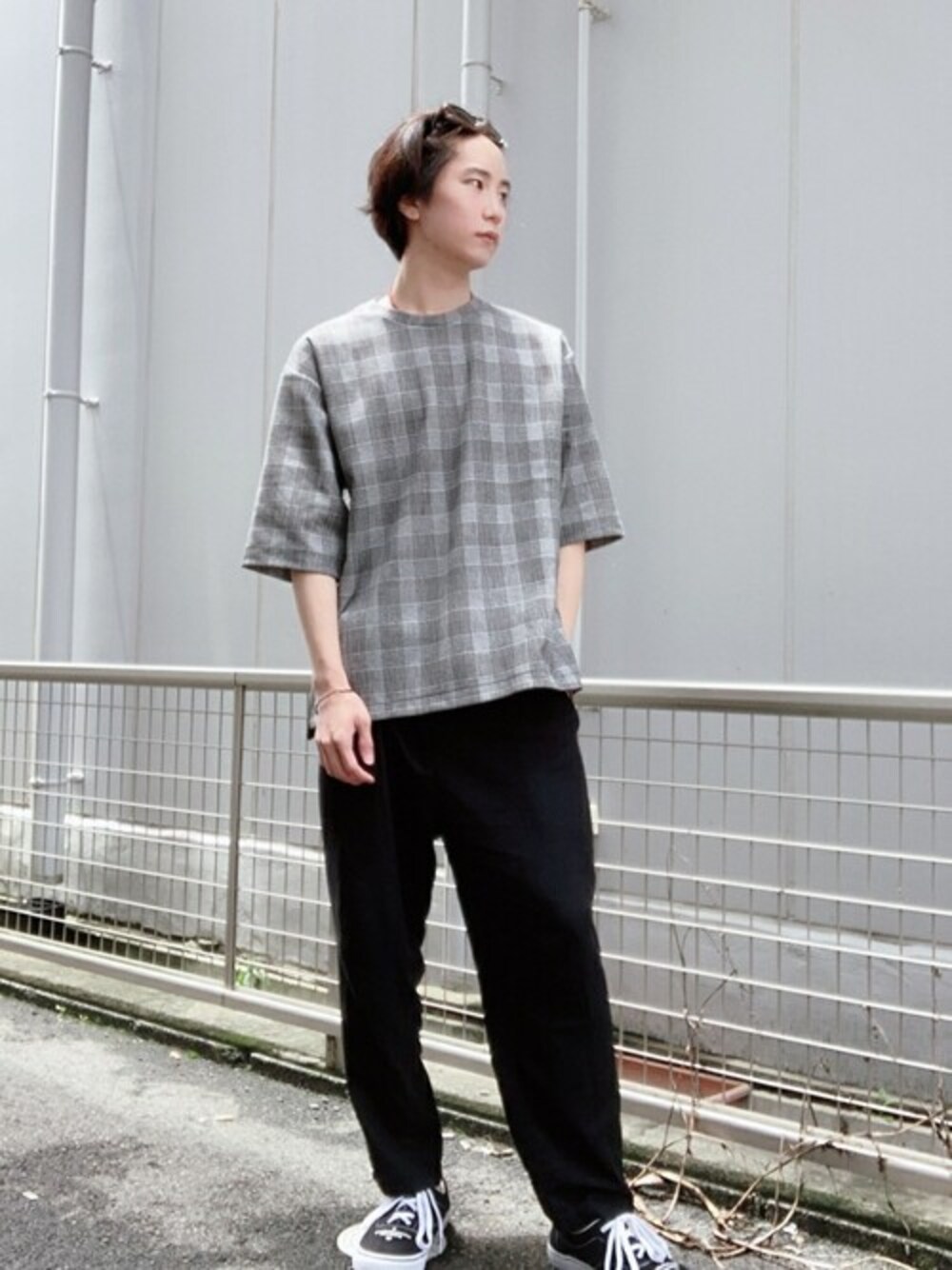 WEGO(WEGO STAFF)のTシャツ/カットソー「WEGO/チェック5分袖プルオーバー」を使ったコーディネート
